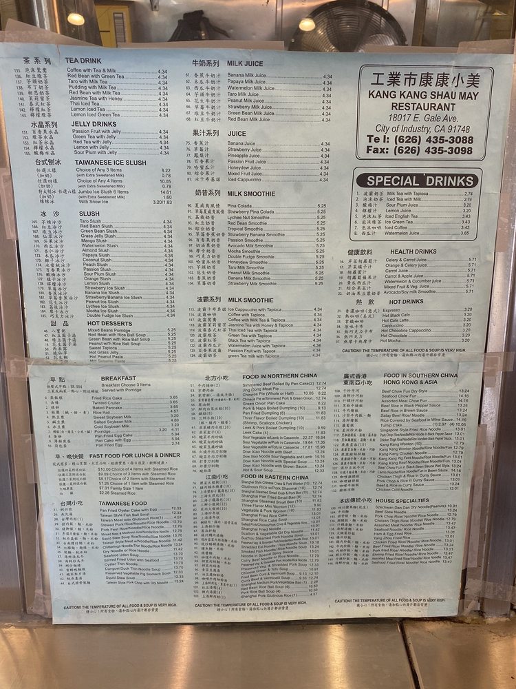 Kang Kang Shau May is a Chinese fast-food restaurant in City of Industry, CA that offers a variety of delicious dishes. Customers praise their Shanghai pan-fried dumplings and pan-fried buns for being juicy, flavorful, and crispy. The restaurant has a casual yet classy ambiance, making it suitable for both lunch and dinner. The menu includes options like beef rolls, pork and celery wontons, and noodle soup, all freshly made and satisfying. Despite some wait times on busy days, the quality of the food is worth it. The staff is friendly and helpful, and the prices are reasonable for the generous portions. If you're in the mood for homemade Chinese food that's packed with flavor, Kang Kang Shau May is a must-visit spot.